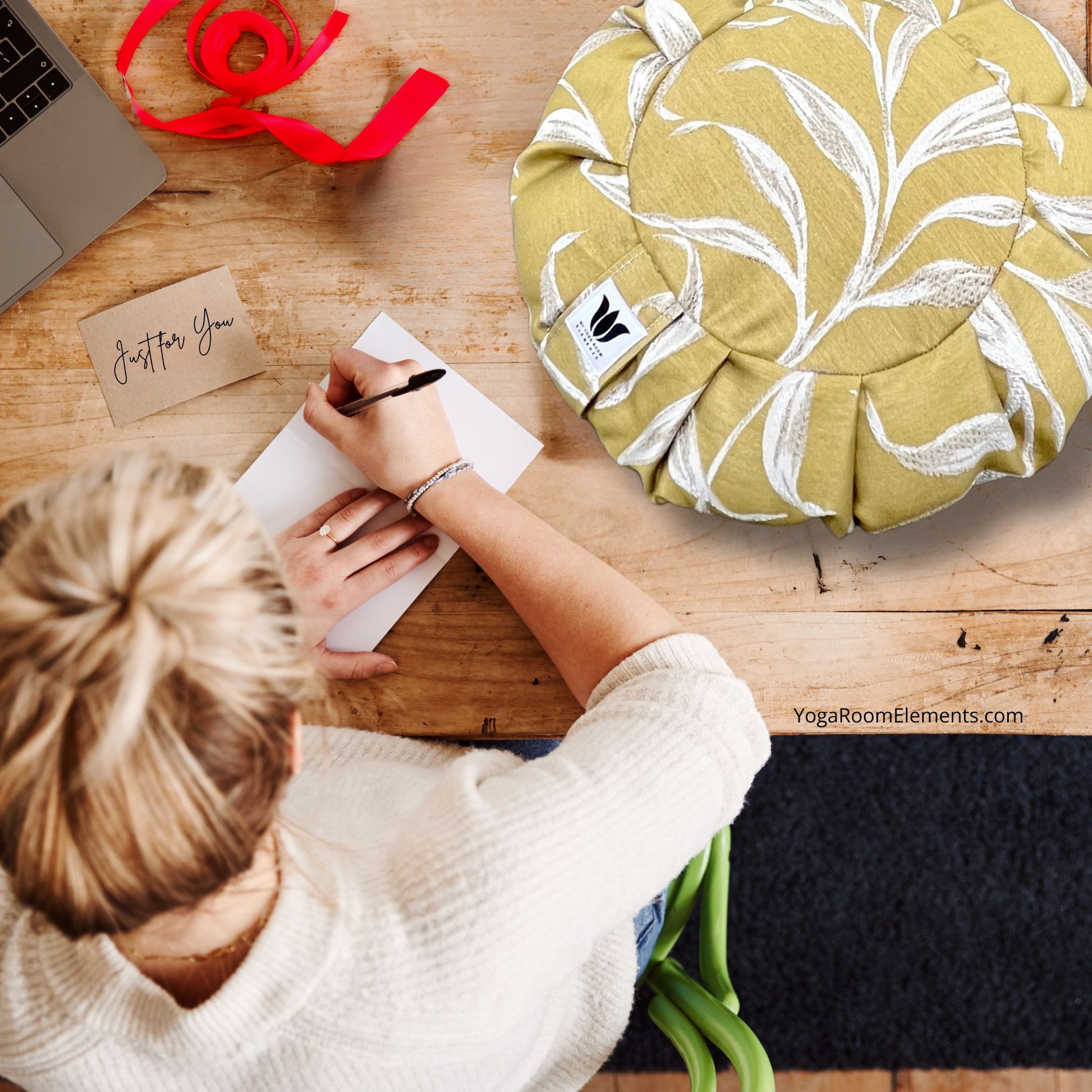 Our Yellow Leaf Embroidery Print cushion is designed specifically to reduce muscle tension and fatigue when sitting. Its ergonomic features provide superior lumbar support, optimal spinal alignment, and improved posture for greater comfort and quieting of the monkey mind in your meditation practice.